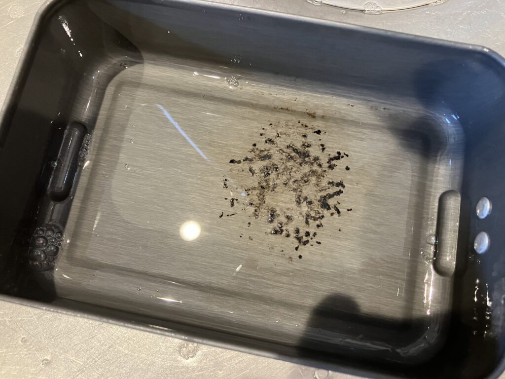 • 結果: 全然落ちん。 焦げはさらに強固になったかのように誇らしげに残っている。