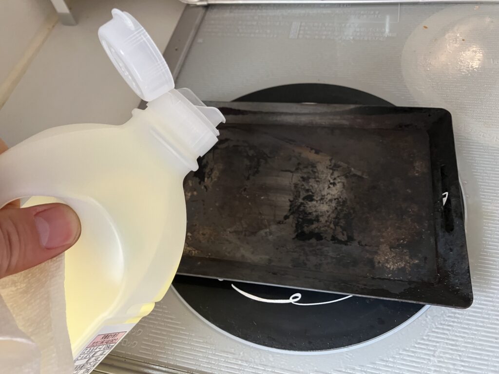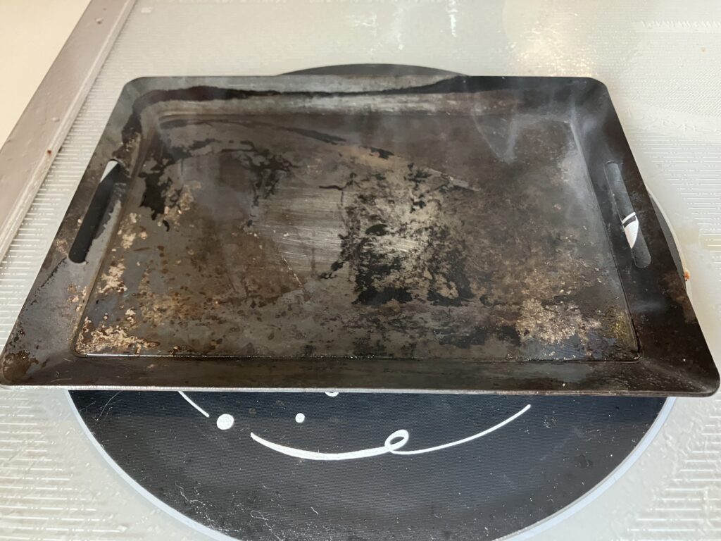 新品の鉄板には防錆剤や加工油が塗られていることが多く、そのまま使うと食材に匂いや味が移ることも。