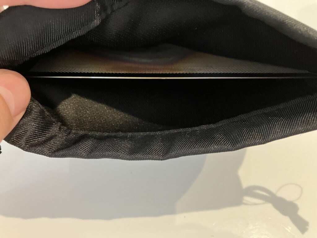 バーナーパット(約15cm四方)も余裕で収納可能。複数枚入れても厚みが出すぎず、他のギアと一緒に持ち運びやすい。袋の口がしっかり閉まるので、細かいパーツの紛失も防げます。