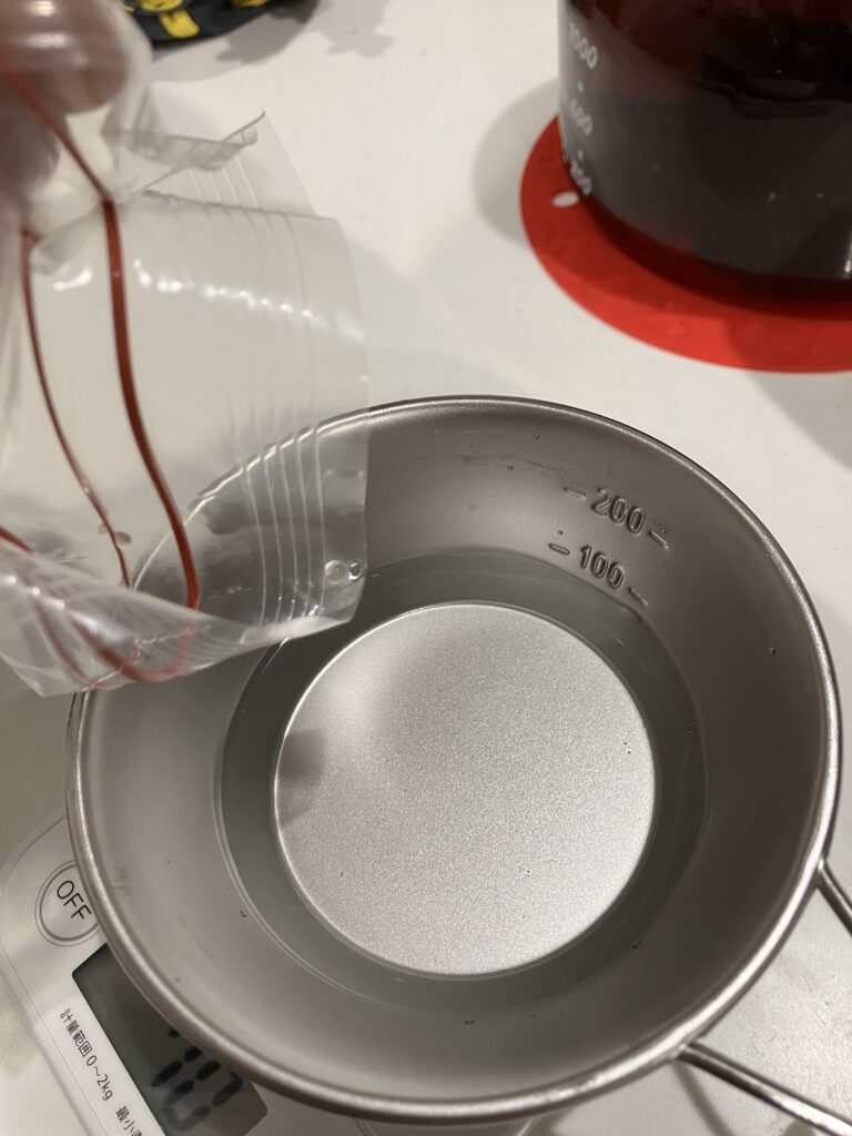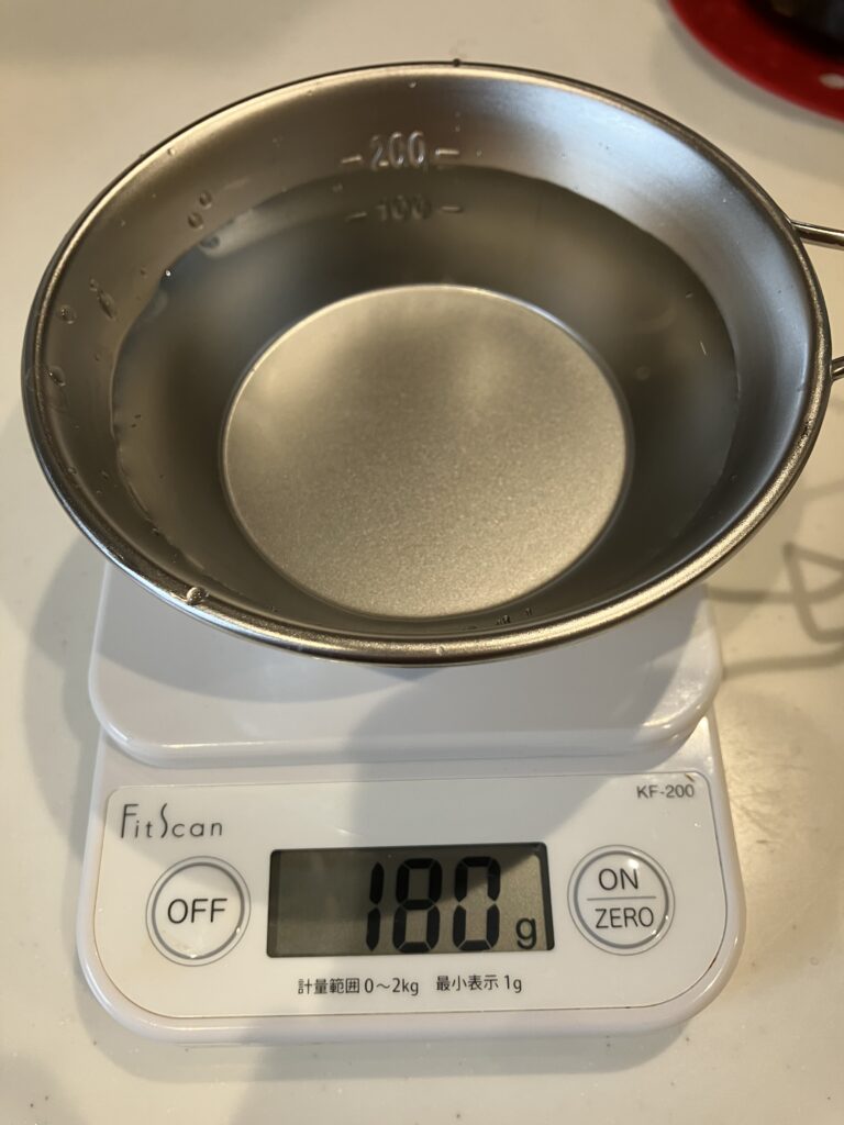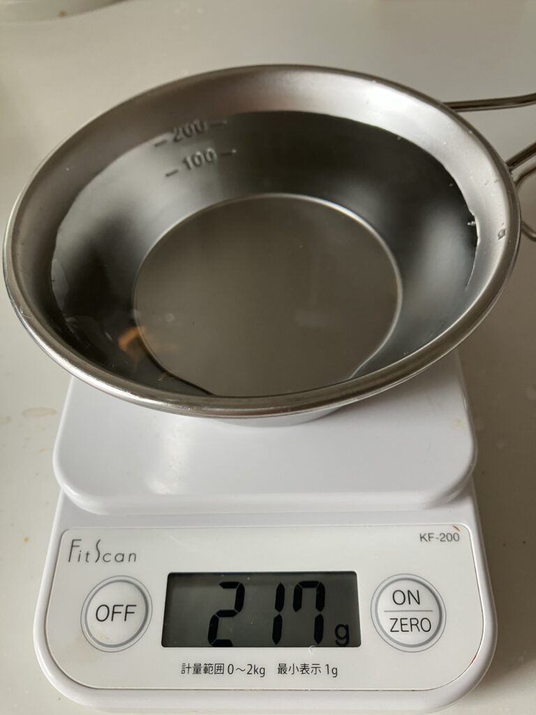 翌昼(25時間後) 約217g(少しこぼれあり)
