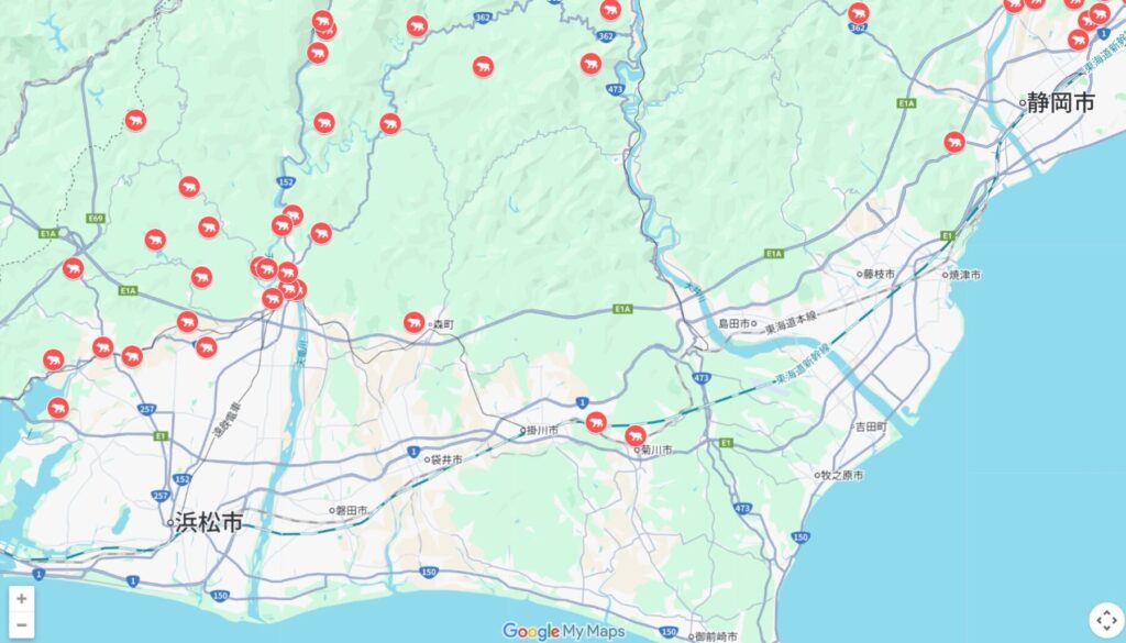 静岡県西部〜中部は本来クマの生息域ではありません。