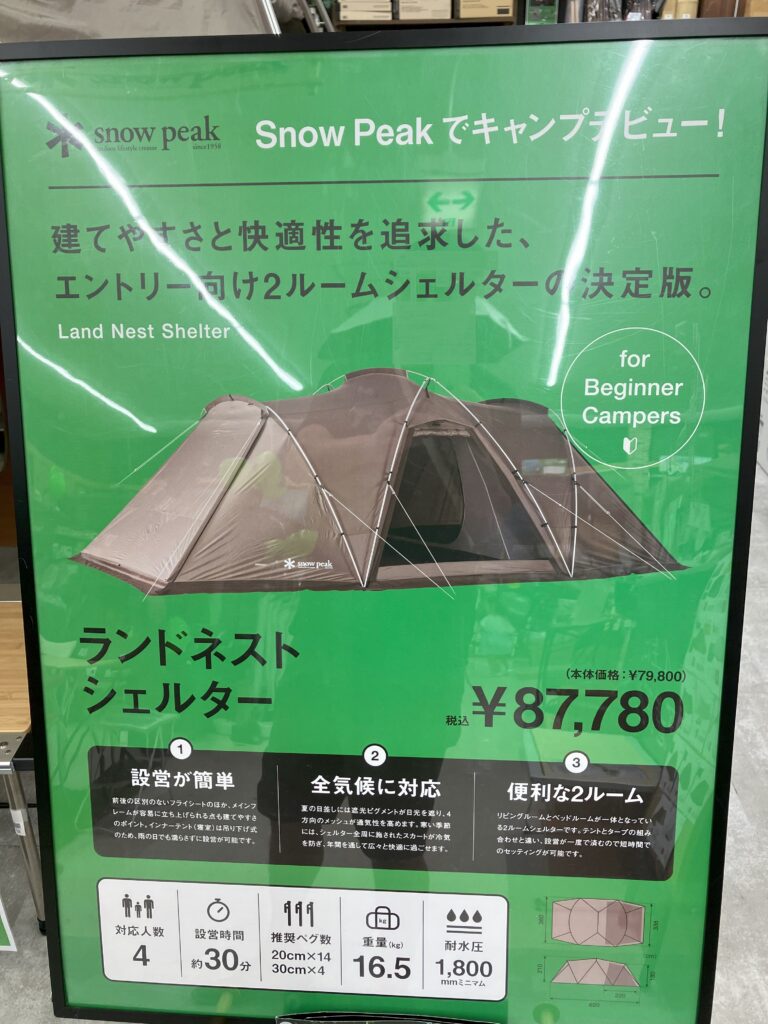 2025年春に登場した「ランドネストシェルター」は、スノーピークのエントリーライン「ランドネスト」シリーズの中でも特に注目されるモデル。価格は約8万7780円と、スノーピーク製品としては破格のコスパを誇ります。