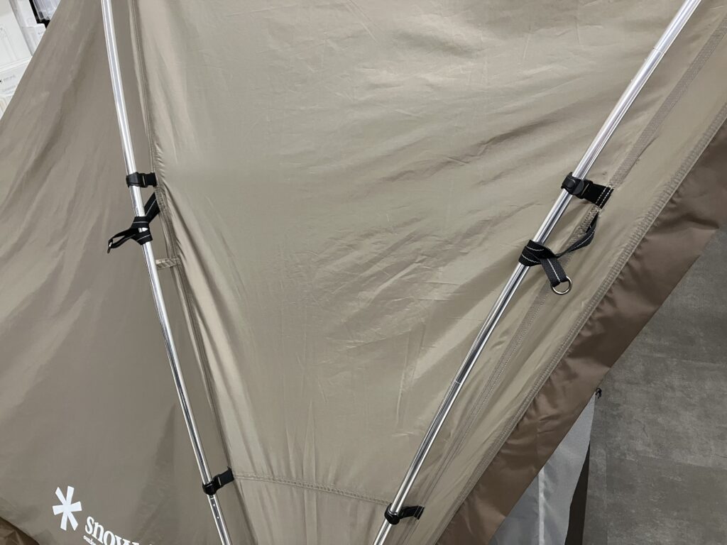 - 張り綱はV型でペグの本数を減らし、転倒リスクも低減