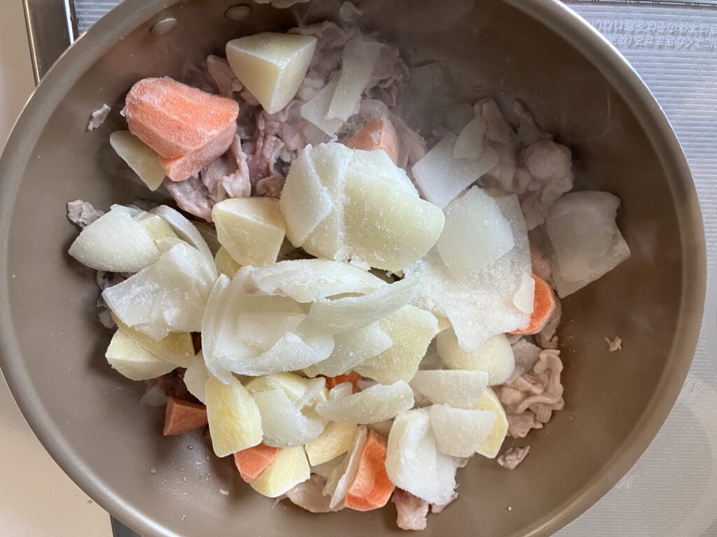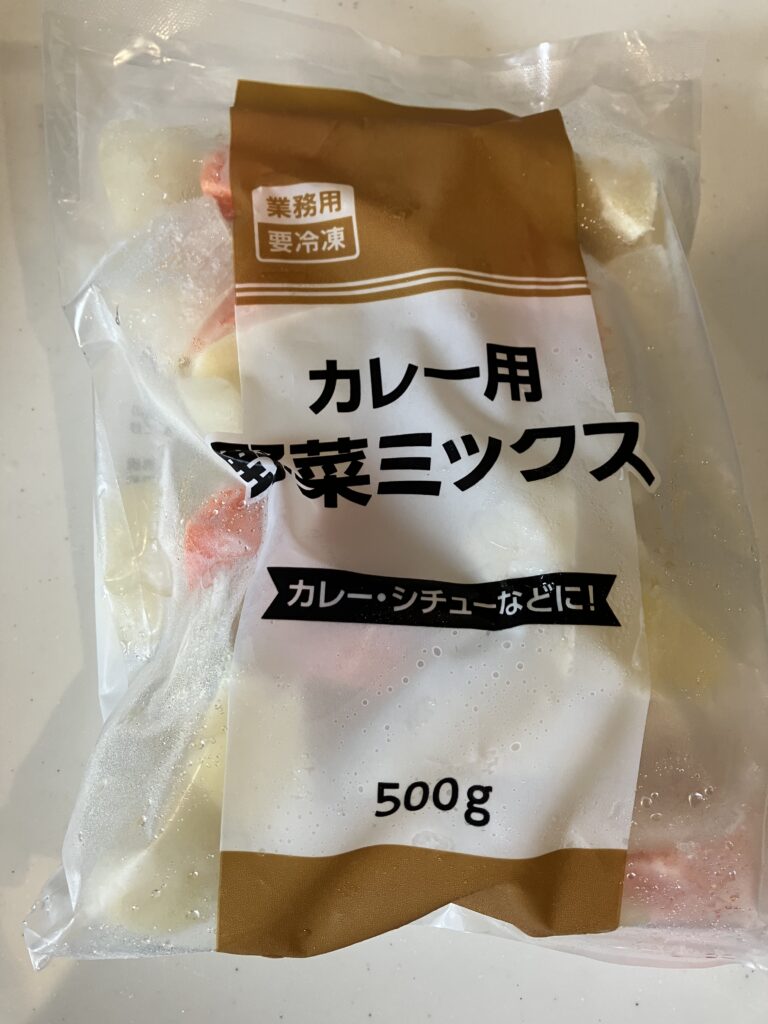 今回は時短で業務スーパーのコレ!カレー用野菜ミックスを使う。
