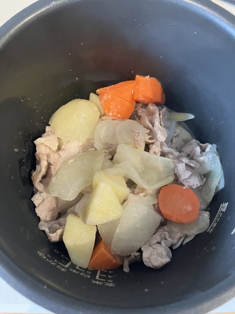 その後、野菜だけの水分で無水調理。